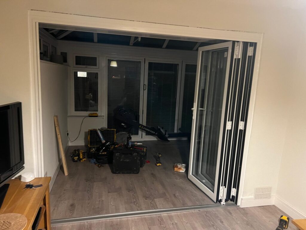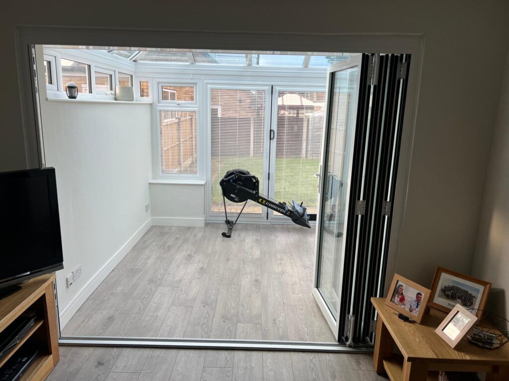 Internal bifold between the house and conservatory to keep the warmth in the winter and it open plan in the warmer months.