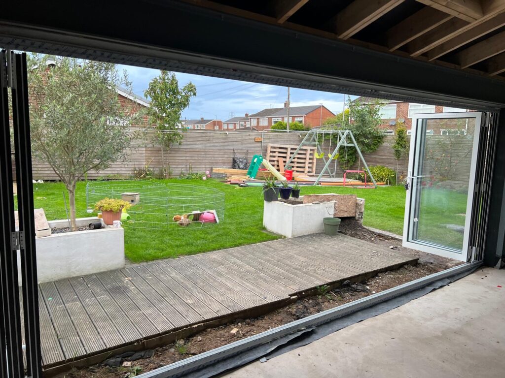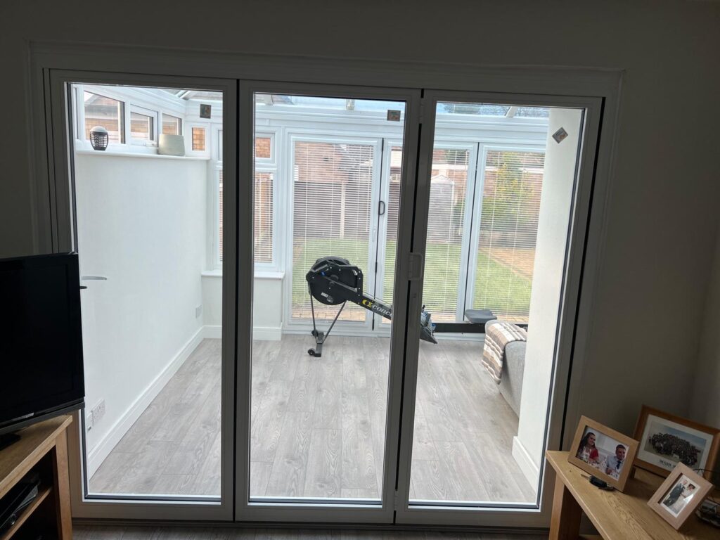 By installing a two leaf aluminium bifold in each room with slim sightlines and no side frames the light has been maximised with the glass area now being almost 50% bigger.