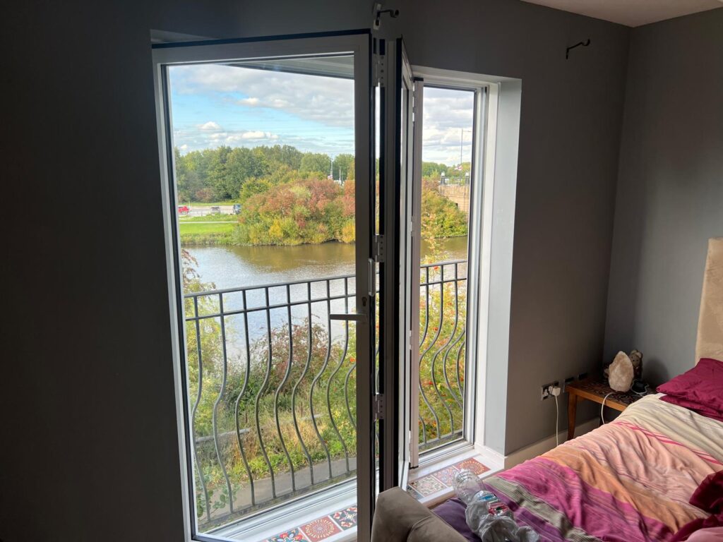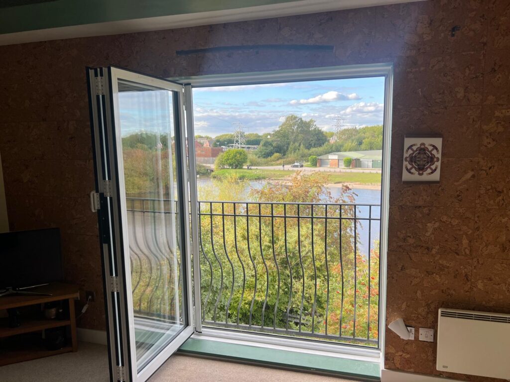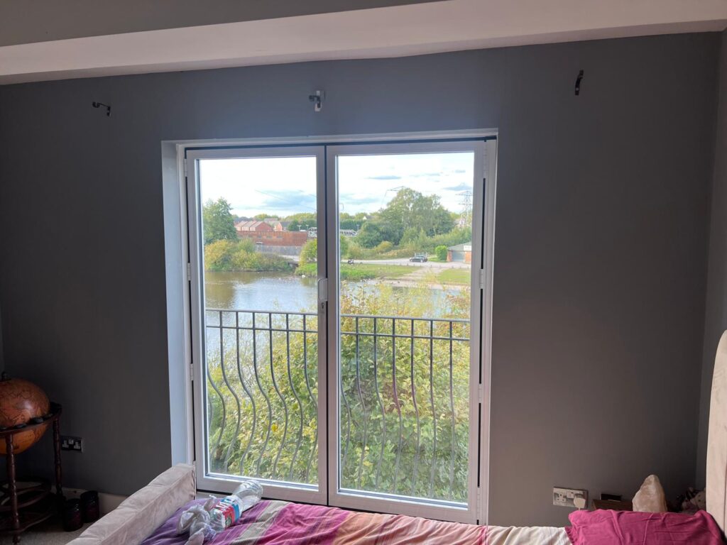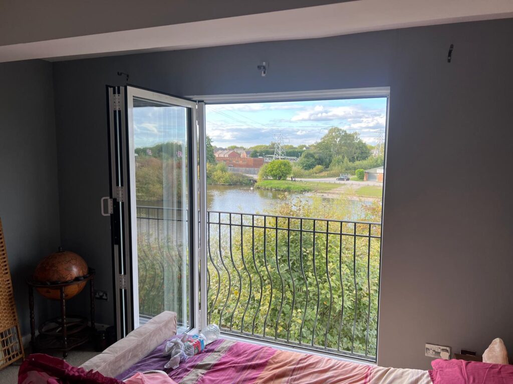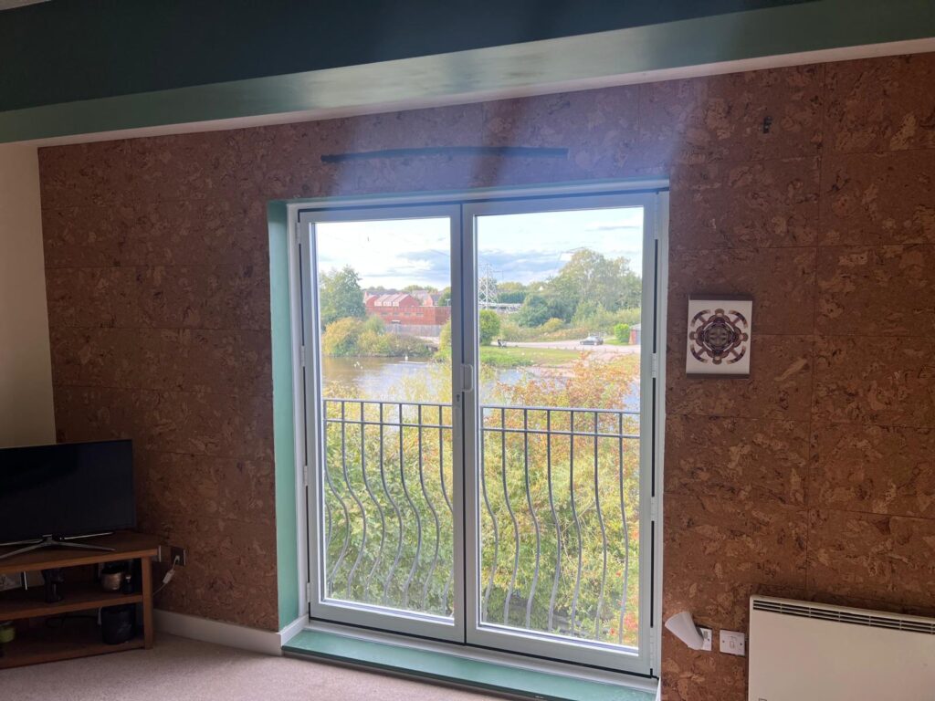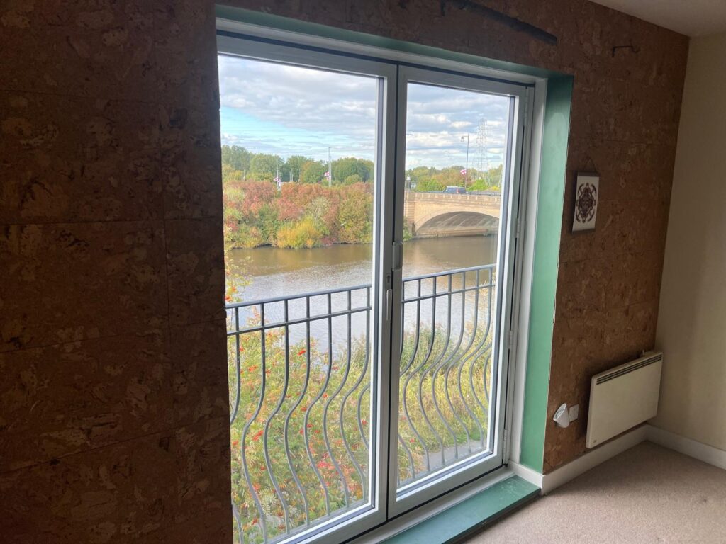 To remove upvc French doors with side frames in the lounge and master bedroom of a second floor apartment with stunning views over the river Mersey.